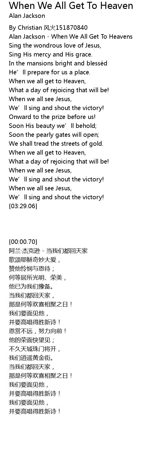 | [00:05.23] | Alan Jackson When We All Get To Heavens |