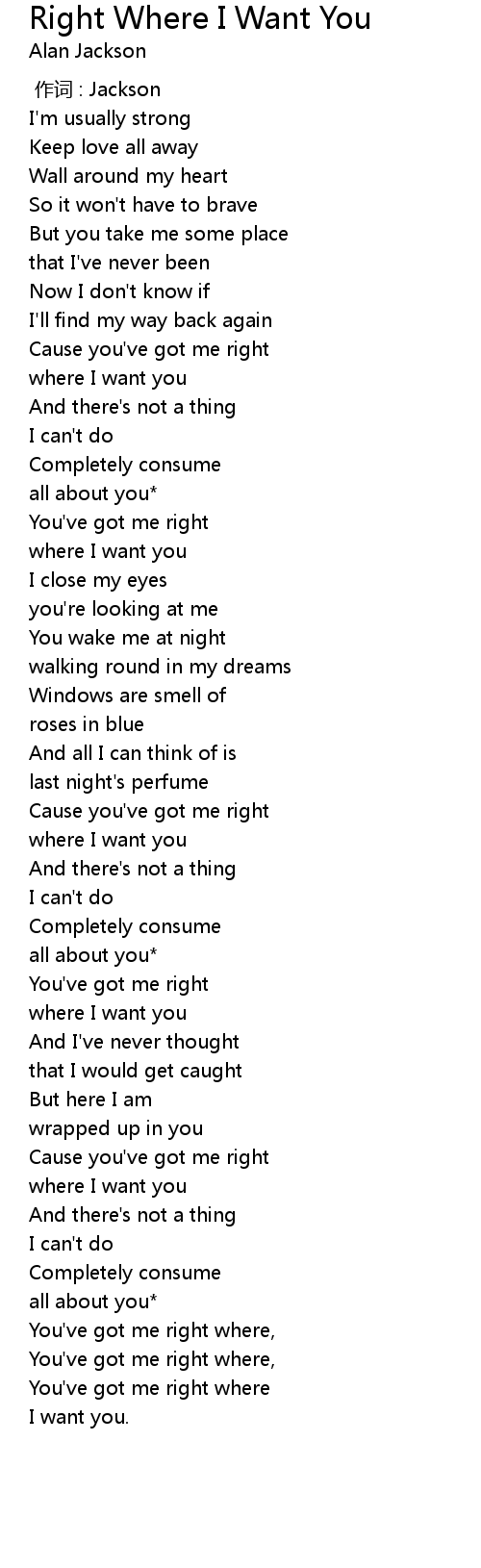 | [00:51.67] | where I want you |