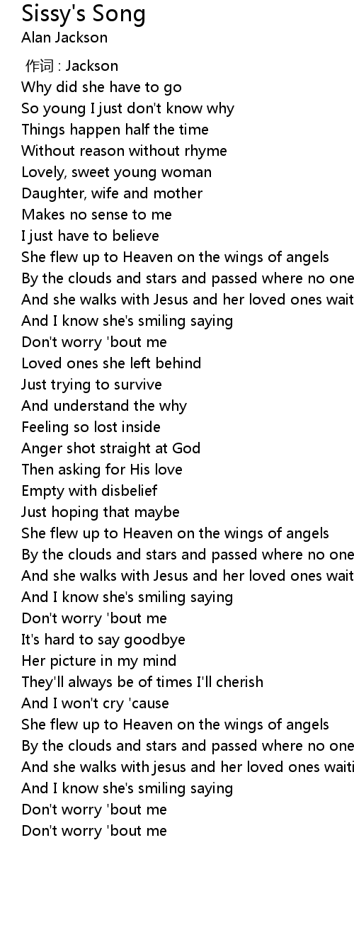 | [02:15.95] | She flew up to Heaven on the wings of angels |