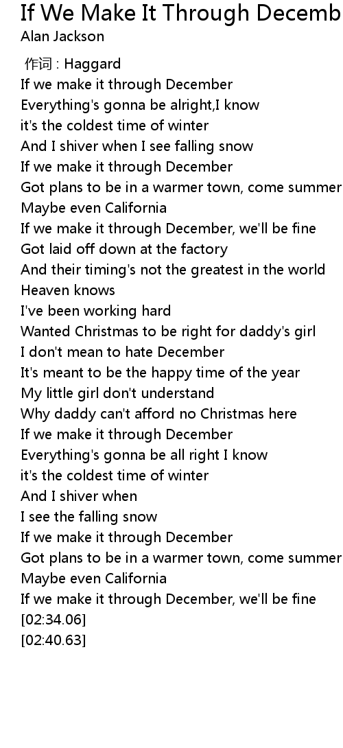 | [00:50.38] | If we make it through December, we' ll be fine |