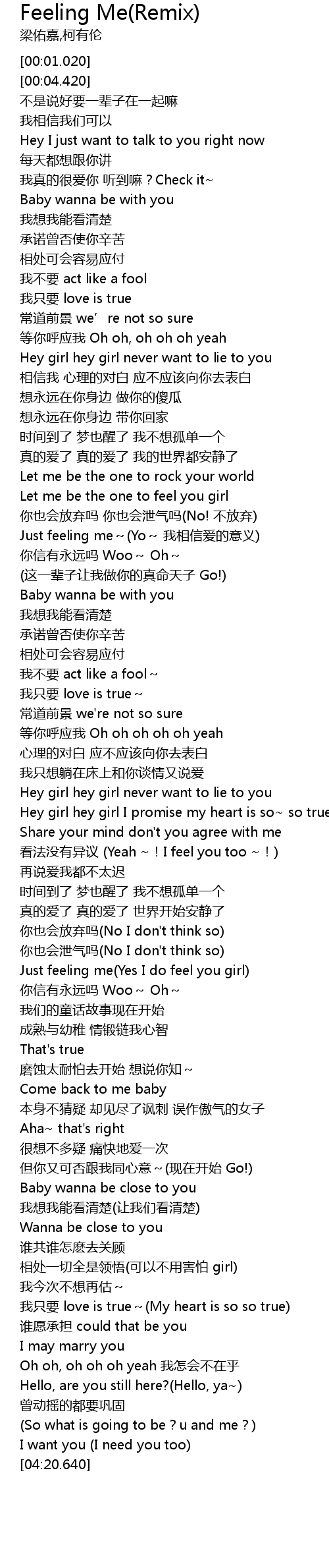 | [02:50.500] | Just feeling me Yes I do feel you girl |