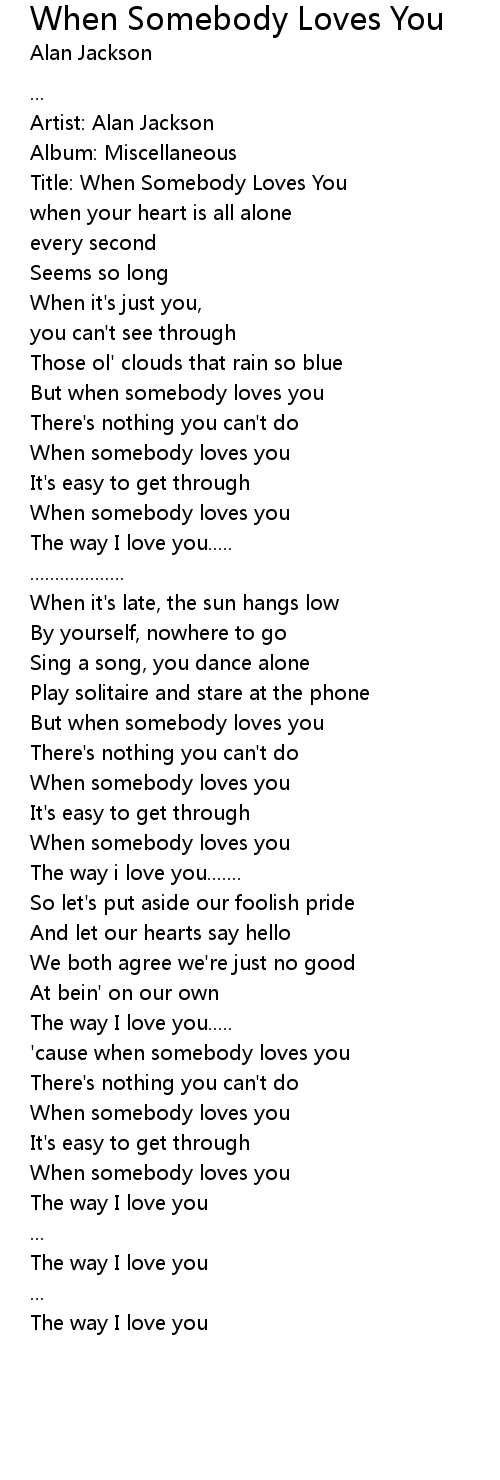 Title: When Somebody Loves You |