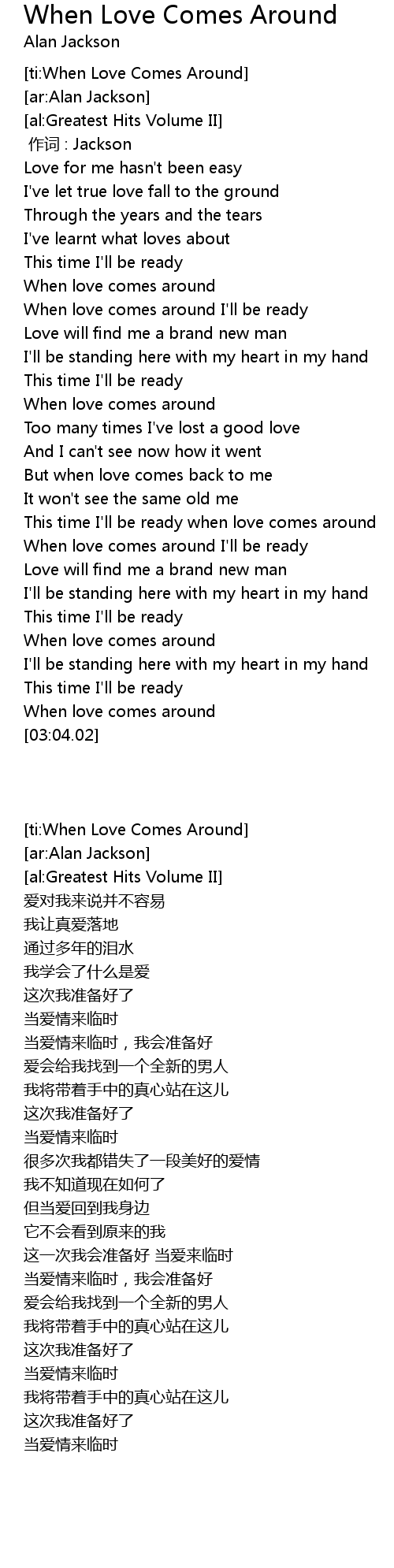 | [02:54.29] | When love comes around |