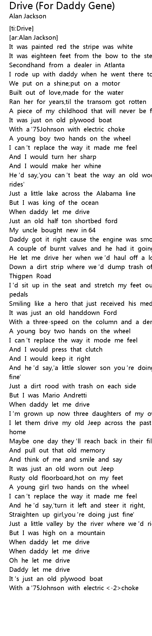 | [03:36.71] | Daddy let me drive |