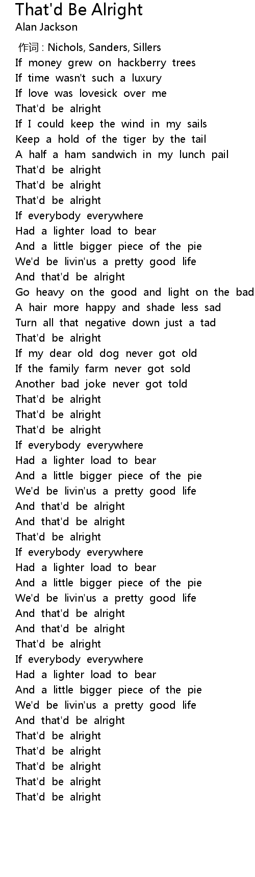 | [00:49.82] | That' d be alright |