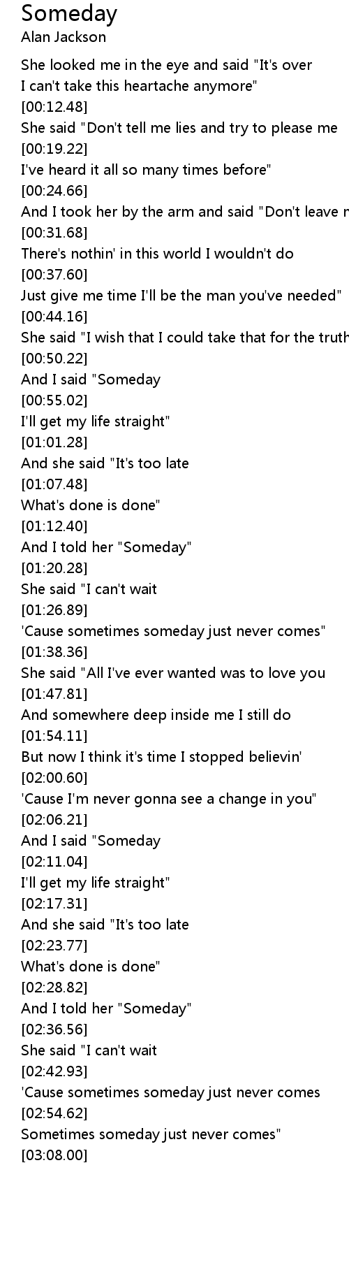 'Cause sometimes someday just never comes |