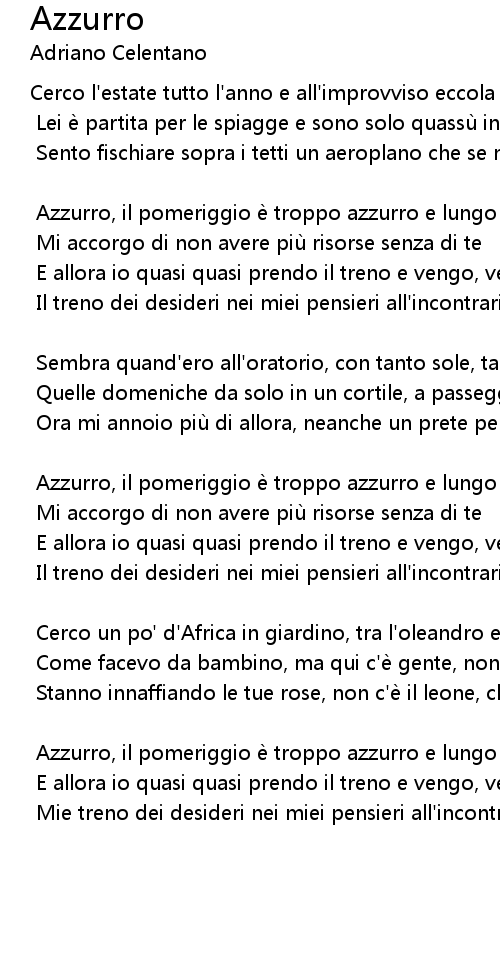 | Azzurro, il pomeriggio è troppo azzurro e lungo per me | |