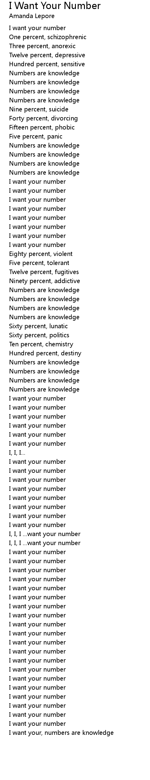 I want your, numbers are knowledge |