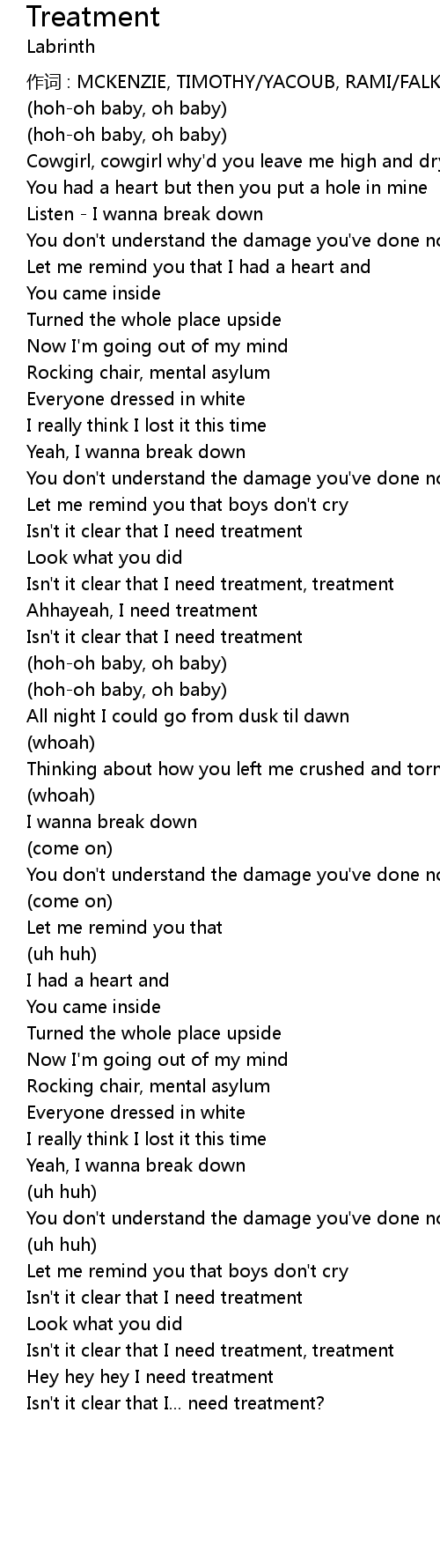 | Isn' t it clear that I need treatment, treatment | |