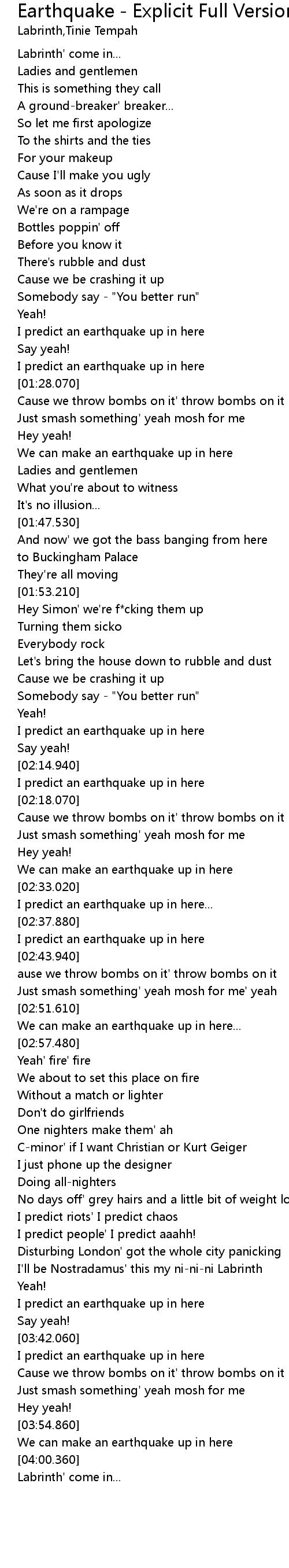 Earthquake - Explicit Full Version Lyrics