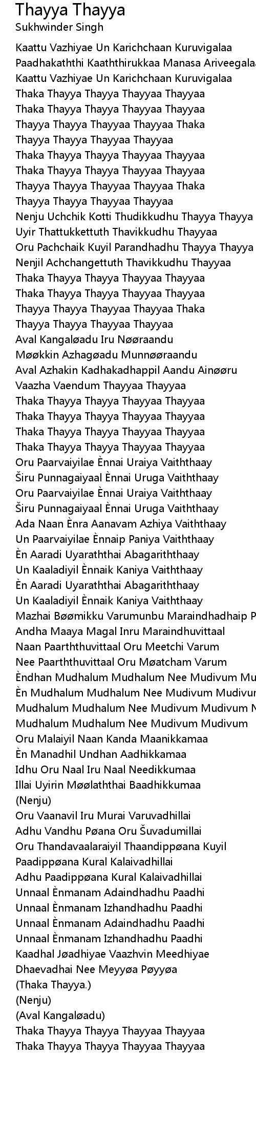 | Song | Thayya Thayya |