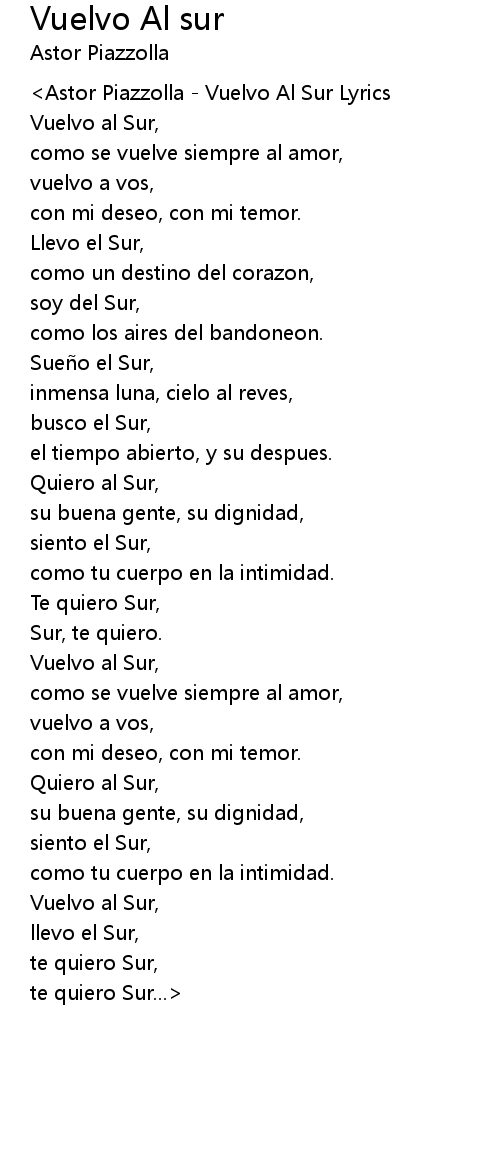 | Astor Piazzolla Vuelvo Al Sur Lyrics | |