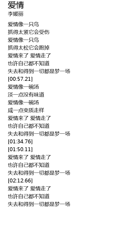 | [00:41.89] | ai qing lai le ai qing zou le |