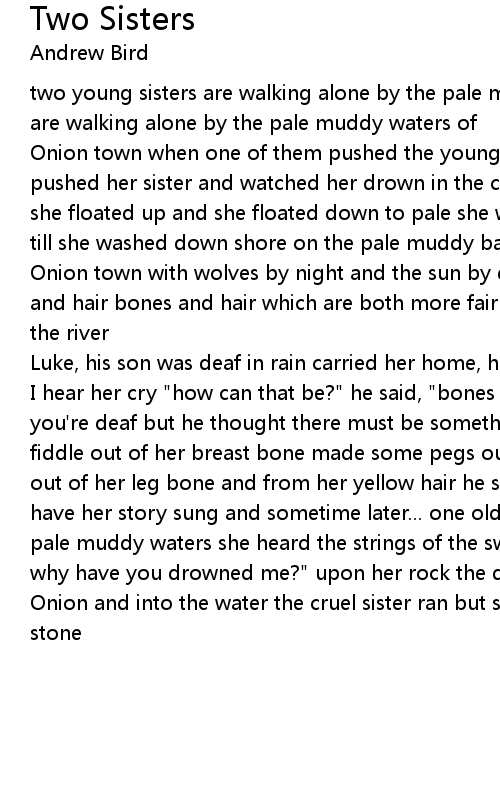 Onion town when one of them pushed the younger in into the cold rain waters pushed her sister and watched her drown in the cold muddy froth on the river and she floated up and she floated down to pale she was as the water floated down till she washed down shore on the pale muddy banks of |