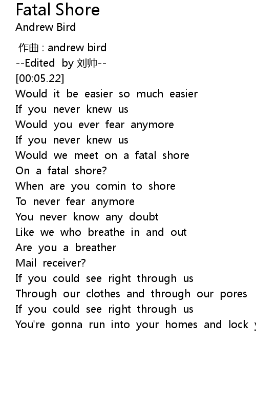 | [02:33.33] | You' re gonna run into your homes and lock your doors |