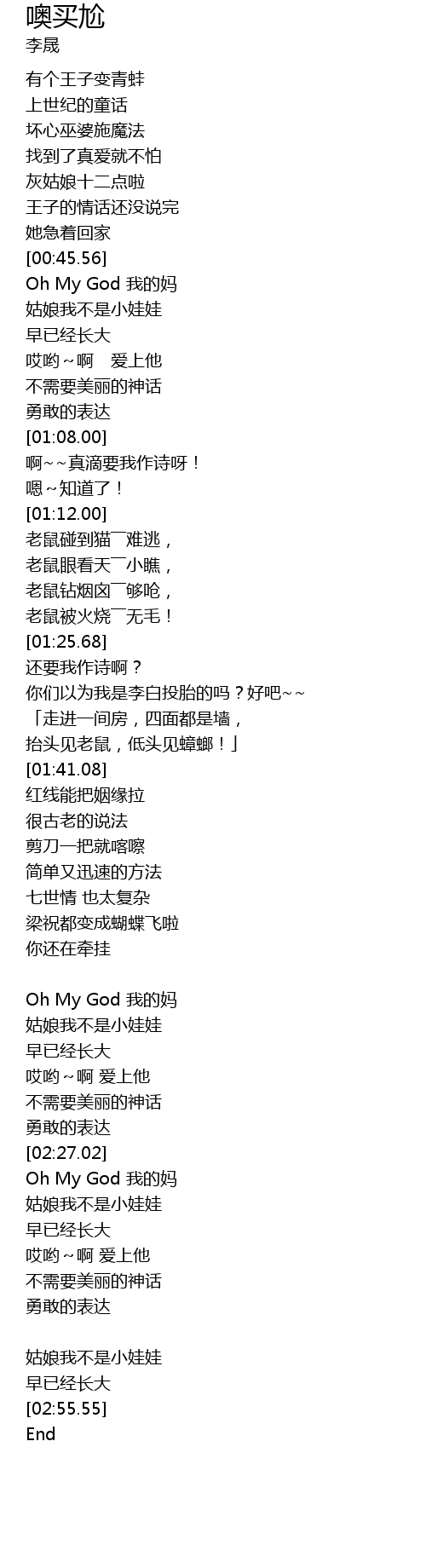 | [01:08.84] | 啊~~真滴要我作诗呀! |