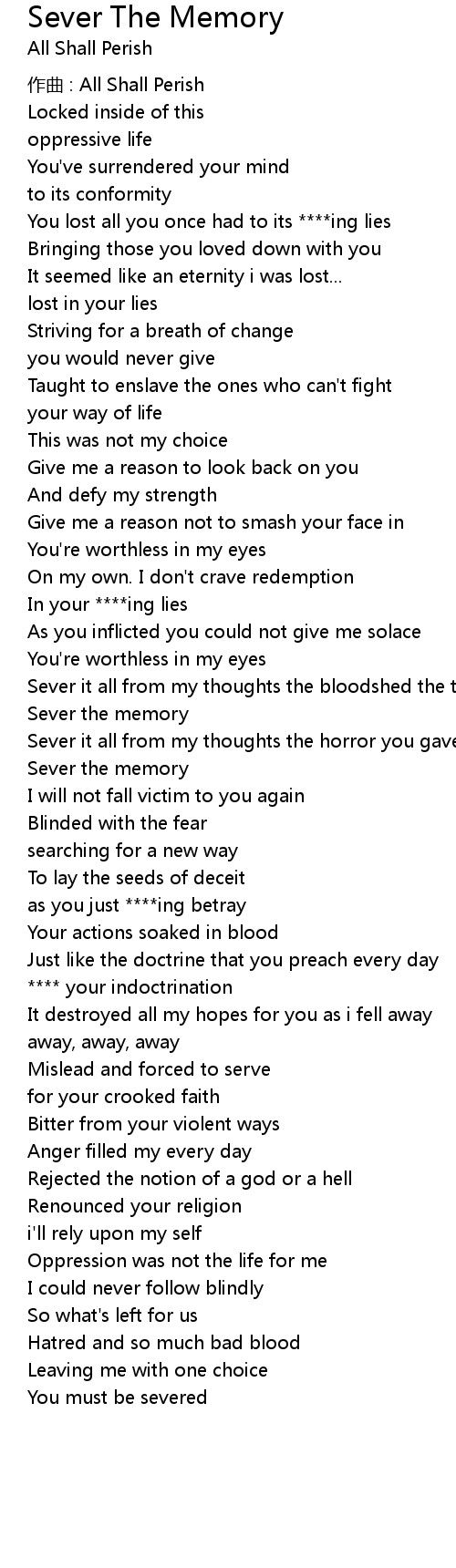 | Song | Sever The Memory |