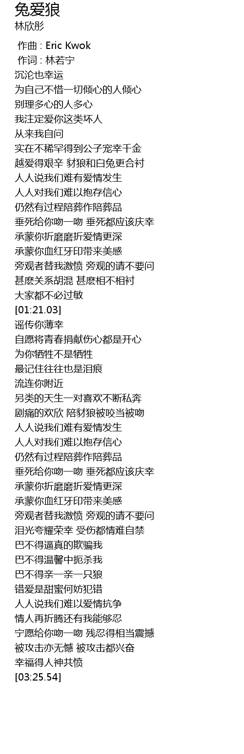 | [00:30.91] | 越爱得艰辛 豺狼和白兔更合衬 |