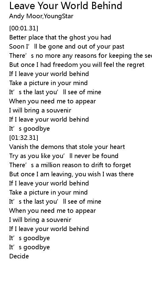 | [02:54.31] | If I leave your world behind |