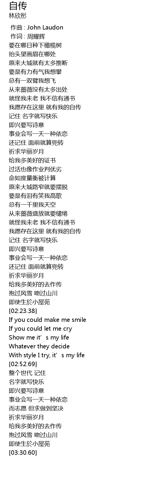| [03:14.91] | 给我多美好的去作传 |