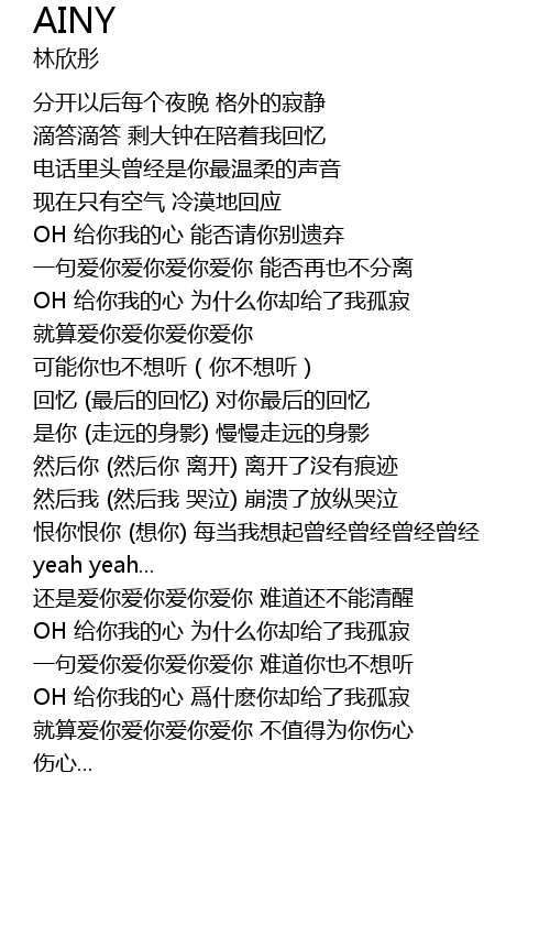 | [02:03.200] | yi ju ai ni ai ni ai ni ai ni nan dao ni ye bu xiang ting |