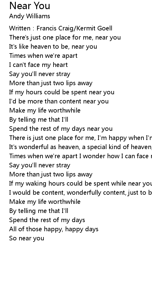 | It' s wonderful as heaven, a special kind of heaven, but only when I' m near you | |