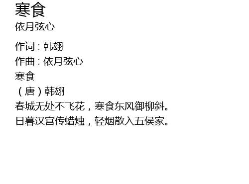 | 春城无处不飞花,寒食东风御柳斜。 | |