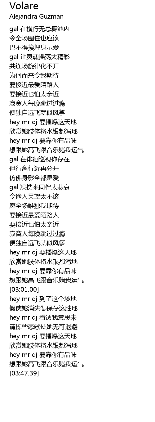 | [03:16.39] | hey mr dj 到了这个境地 |