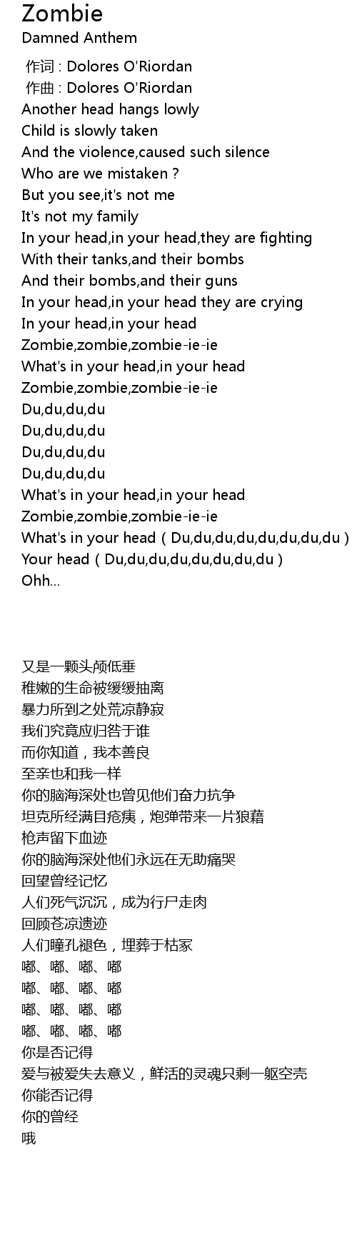 | [02:03.98] | Zombie,zombie,zombie-ie-ie |