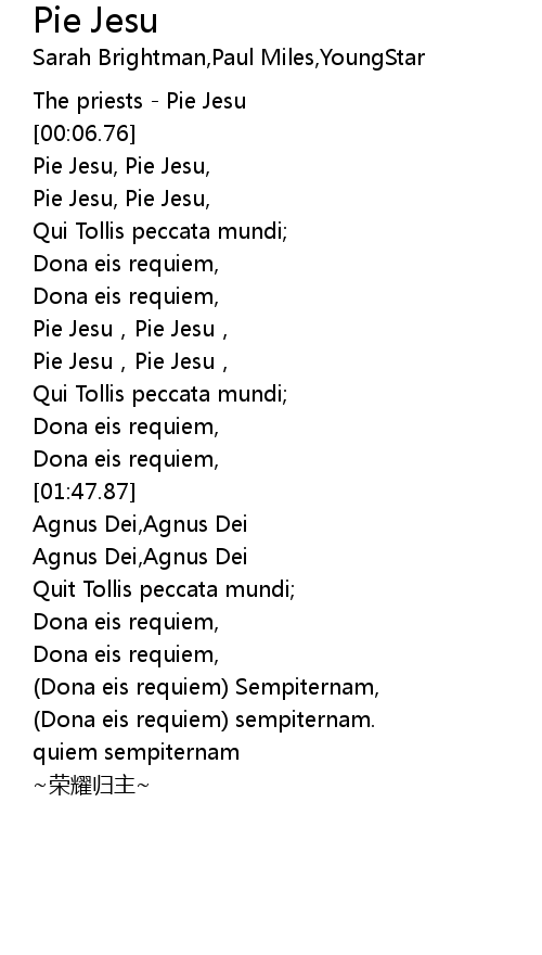 | [01:04.90] | Pie Jesu,Pie Jesu, |