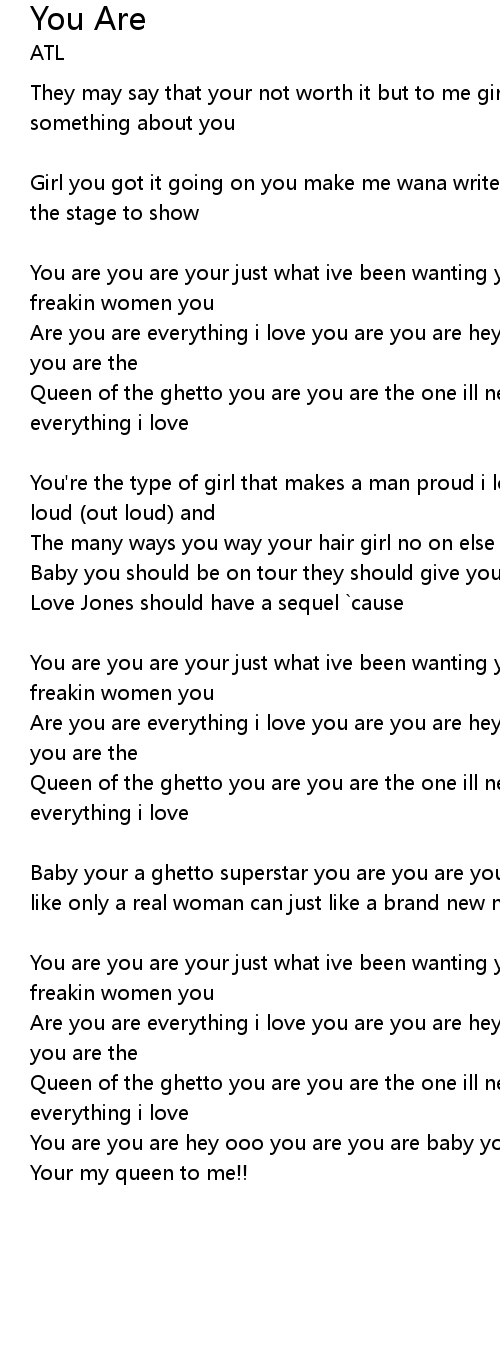 Queen of the ghetto you are you are the one ill never let go you are you are everything i love |