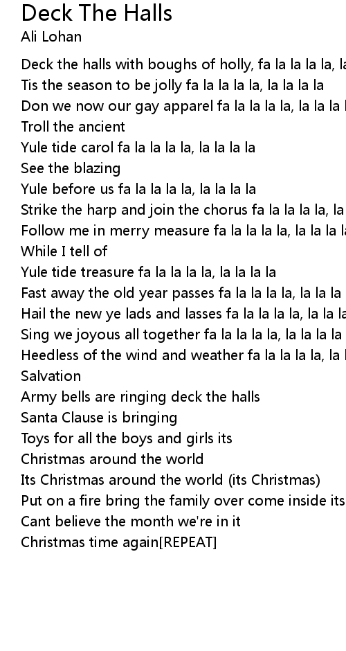 Deck the halls with boughs of holly, fa la la la la, la la la la |