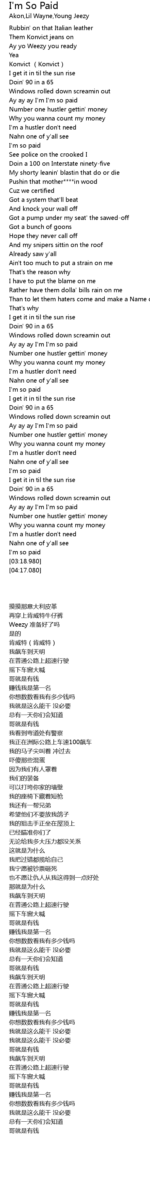| [03:17.290] | I' m so paid |