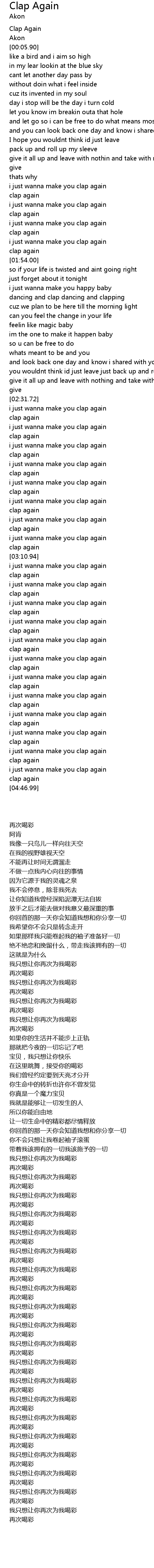 | [00:00.89] | Clap Again |