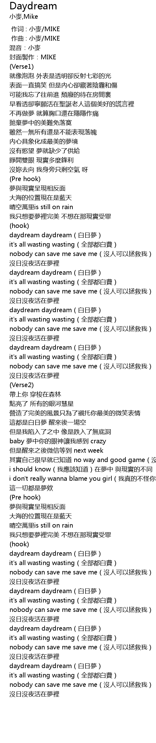 | [02:54.935] | 沒日沒夜活在夢裡 |