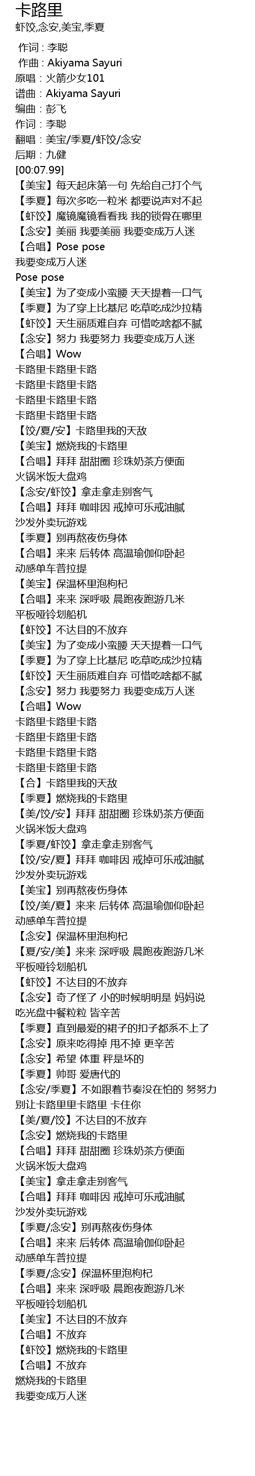 | [01:02.26] | kǎ lù lǐ kǎ lù lǐ kǎ lù |
