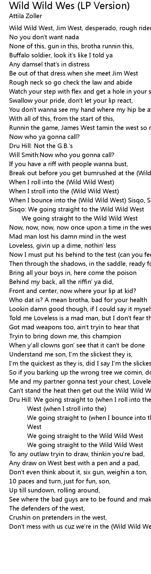 We going straight to the Wild Wild West |