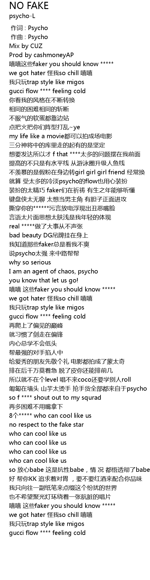 | [01:35.461] | 嘻嘻 这些faker you should know ***** |