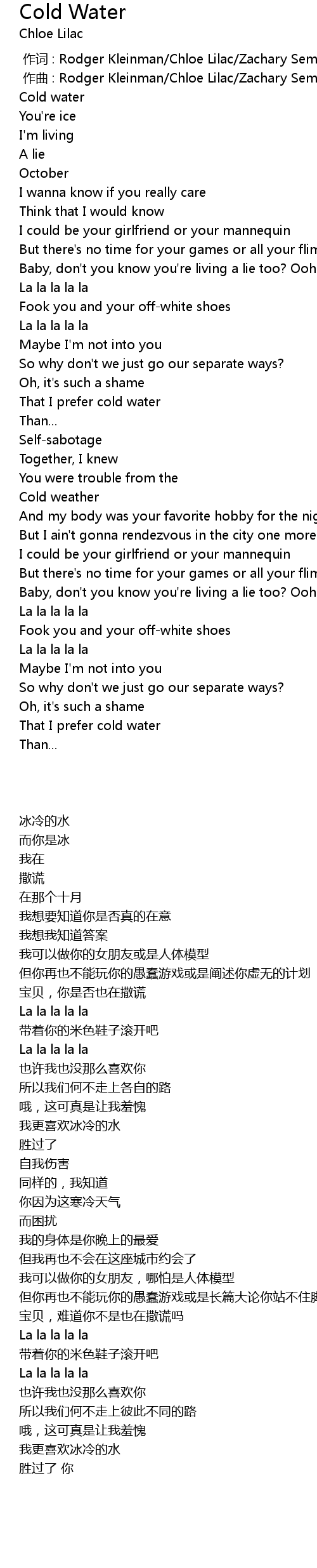| [00:00.000] | 作词 : Rodger Kleinman/Chloe Lilac/Zachary Seman |
