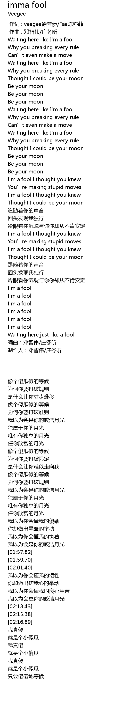 | [00:00.000] | 作词 : veegee徐若侨/Fae陈亦菲 |