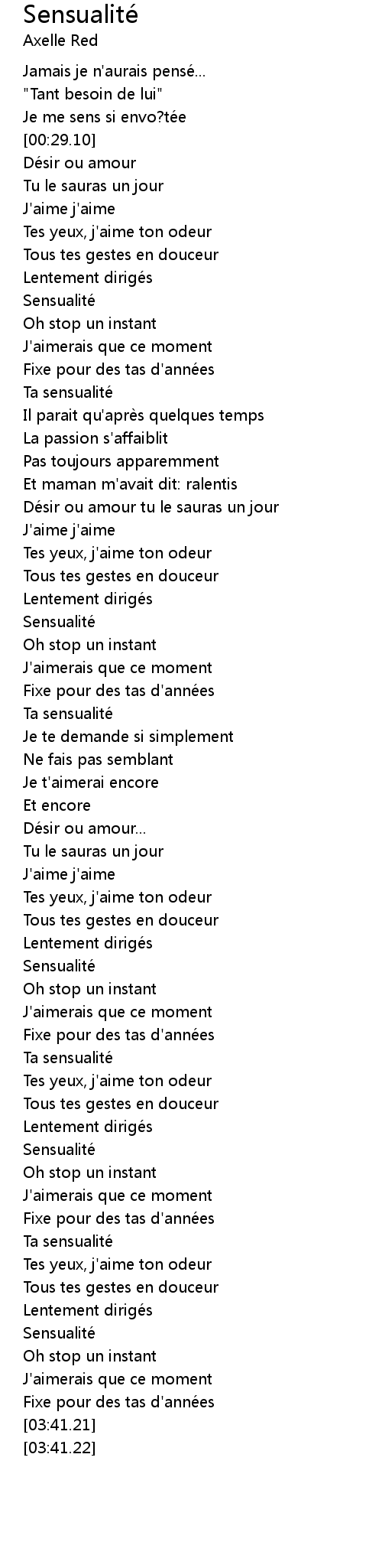 | [03:22.44] | Tes yeux, j'aime ton odeur |