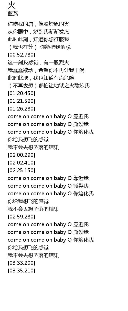 | [03:13.960] | come on come on baby O 你熔化我 |