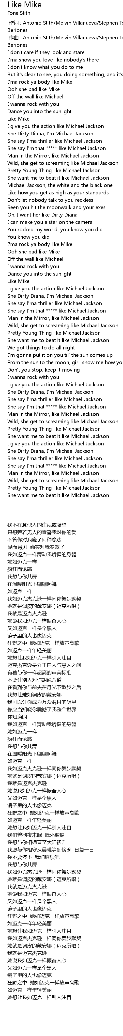 | [00:51.17] | I' ma rock ya body like Mike |
