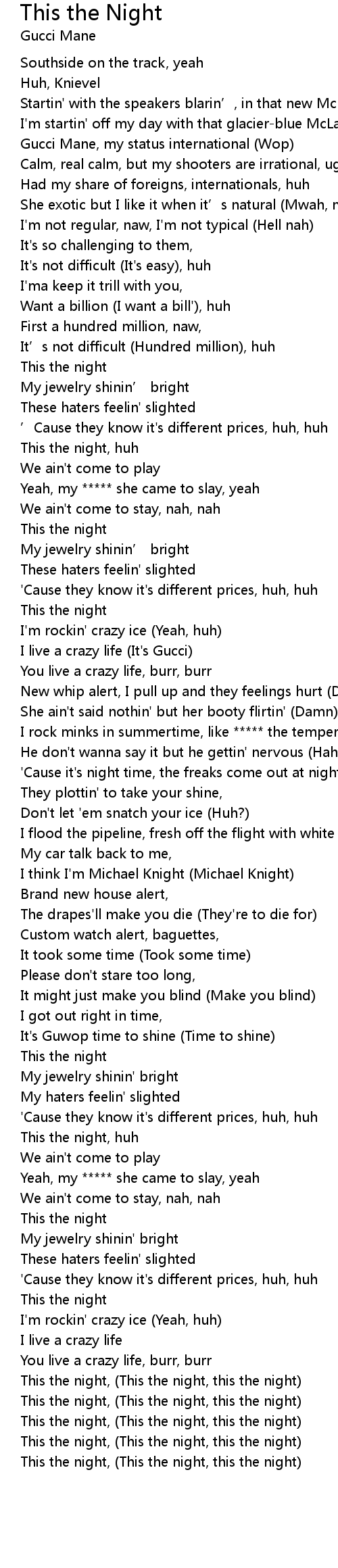 | [01:14.31] | I live a crazy life (It's Gucci) |