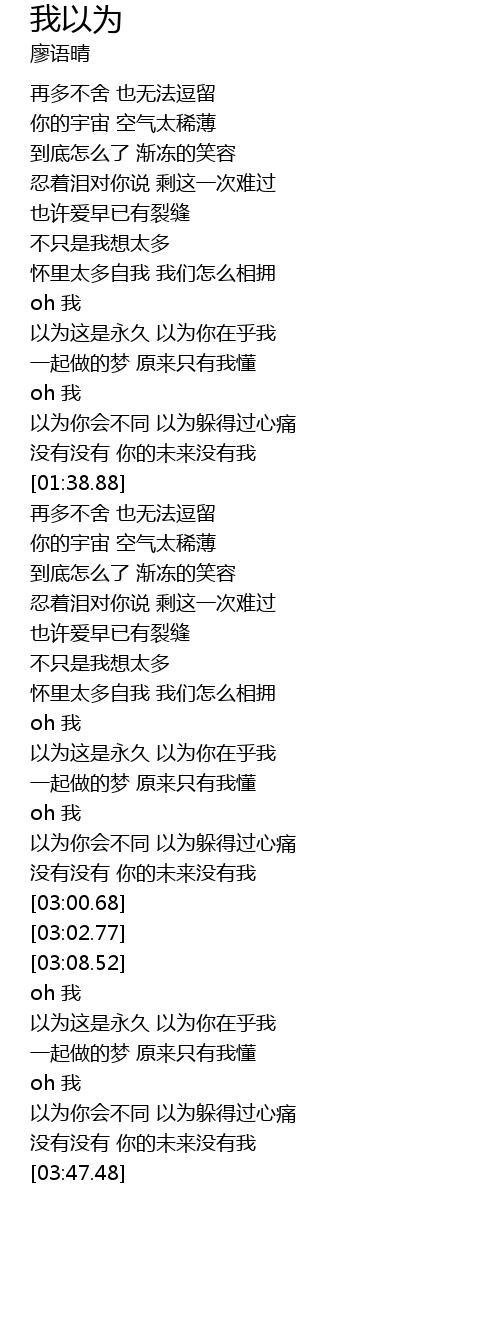| [03:13.49] | 以为这是永久 以为你在乎我 |