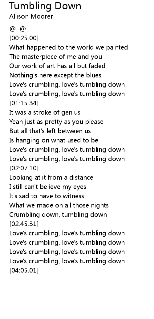 Love's crumbling, love's tumbling down |