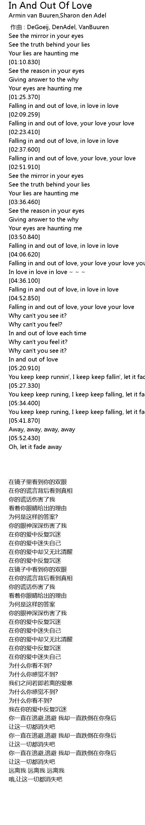 | [05:35.810] | You keep keep runing, I keep keep falling, let it fade away |
