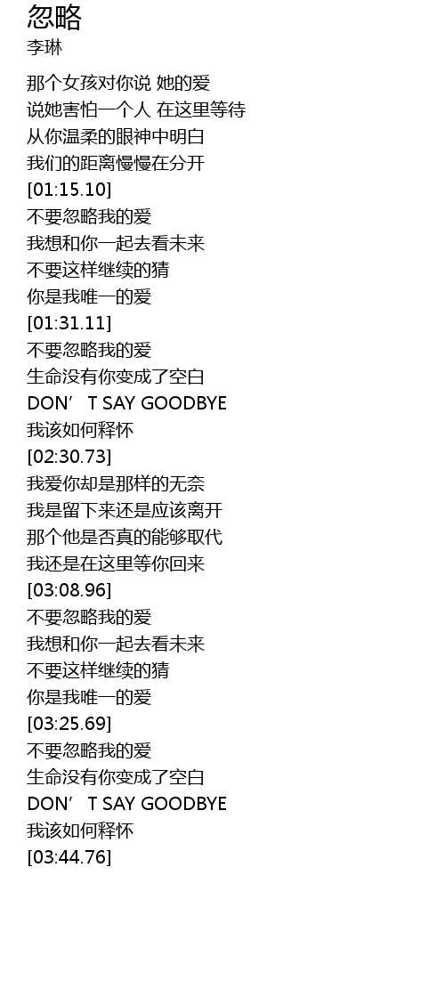 | [03:26.11] | 不要忽略我的爱 |