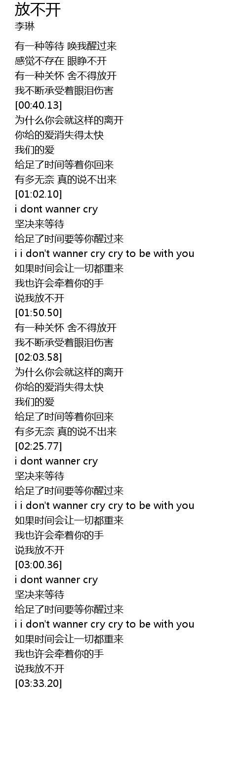 | [03:29.29] | shuō wǒ fàng bù kāi |