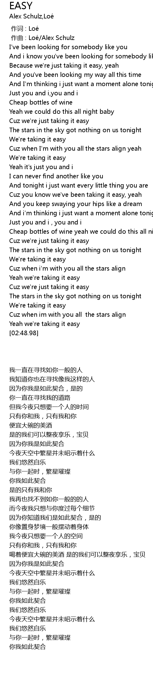 | [00:15.24] | Because we' re just taking it easy, yeah |